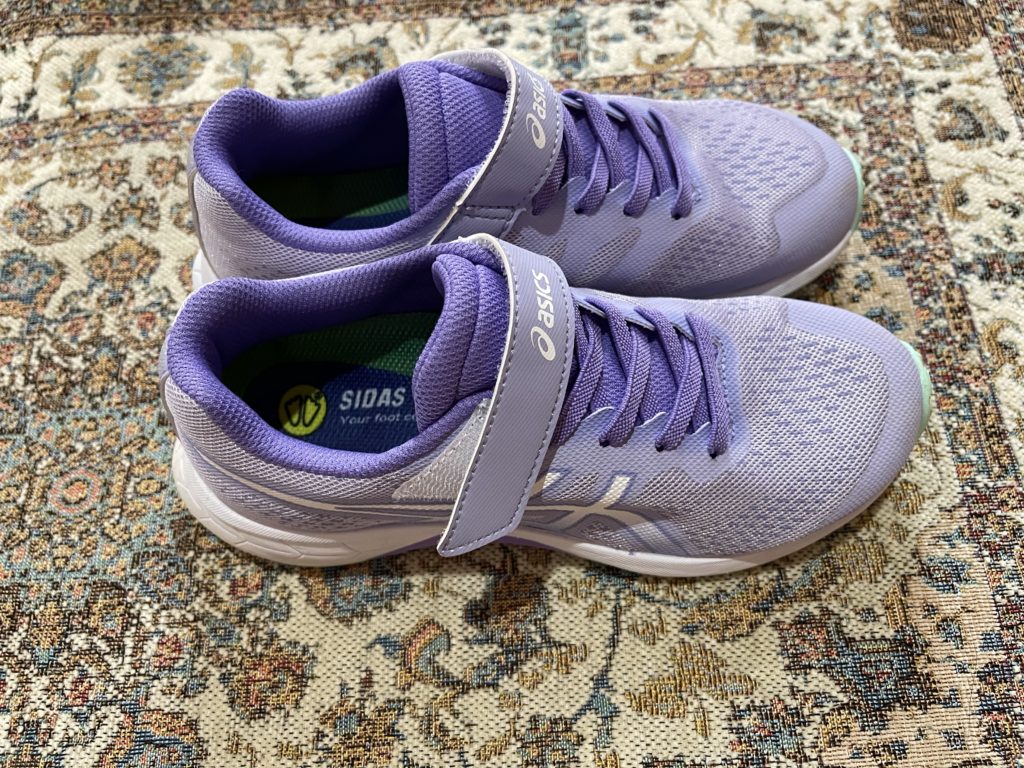 アシックスのレーザービームランニングシリーズです。早く走りたい!をサポートしてくれるスニーカーで、通気性も◎!
