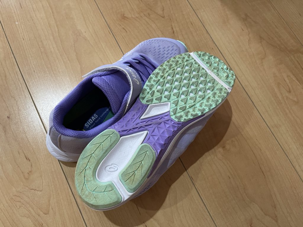 かかと部分もしっかり固くマジックテープもしっかり足を固定してくれる。そして裏面の中心にあるトラスティック!これが足の捩れを軽減してくれて安定してくれて良いのです!ソール部分も指の付け根部分のところだけが曲がり、残りの部分はしっかりした安定性。